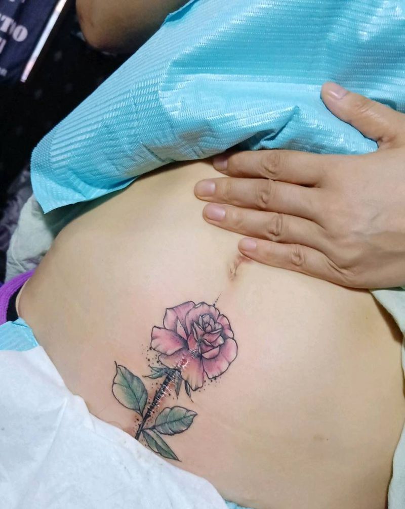 疤痕修饰 玫瑰纹身图片_腹部纹身图案