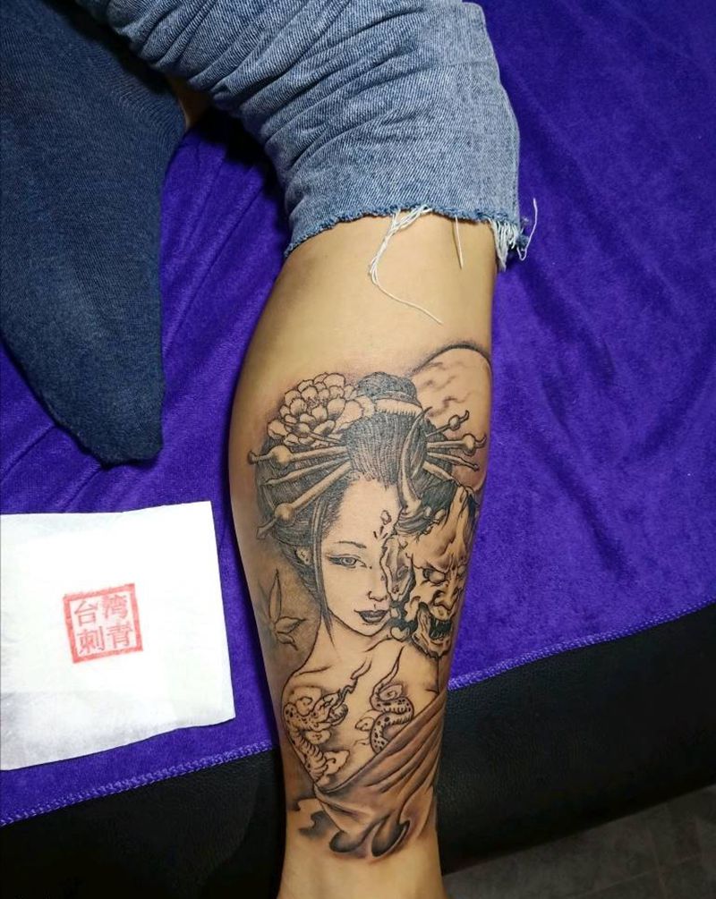 艺伎纹身图片_腿部纹身图案