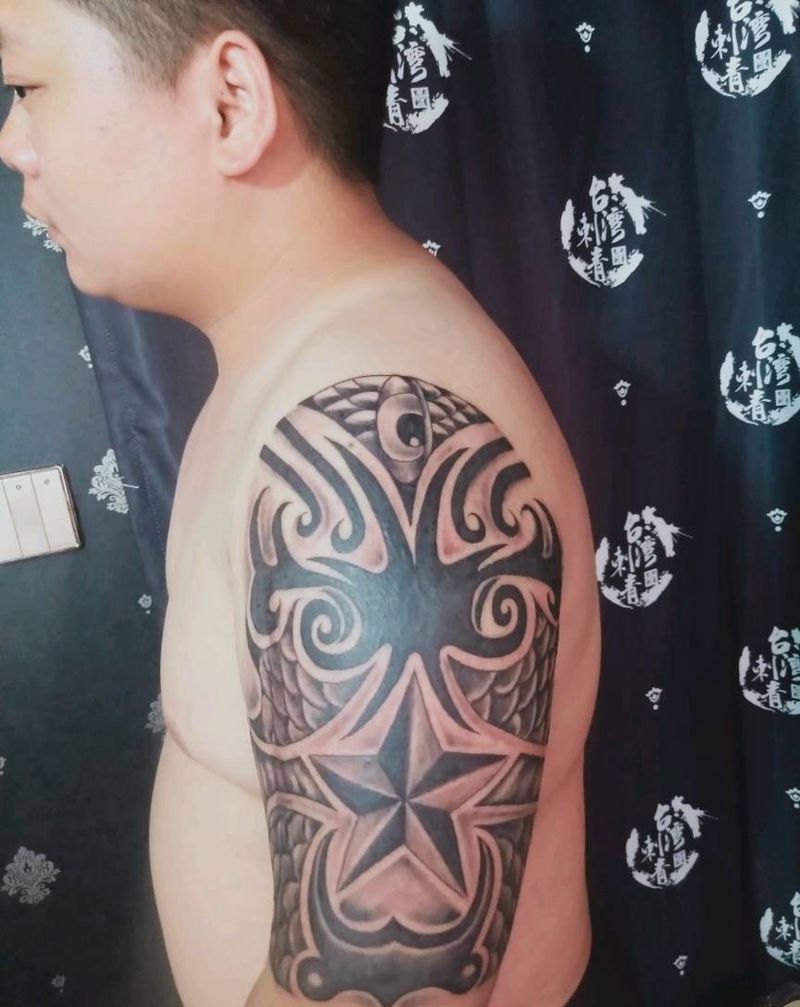 • 纹身吧推荐的披肩图腾半胛纹身图案作品展示