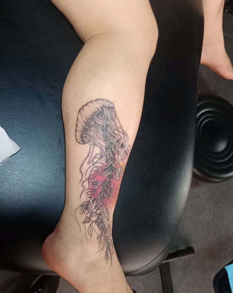 当前位置: 首页 >湖南省常德市纹身店-台湾刺青湖南店纹身图案>水母遮盖纹身图片_腿部纹身图案