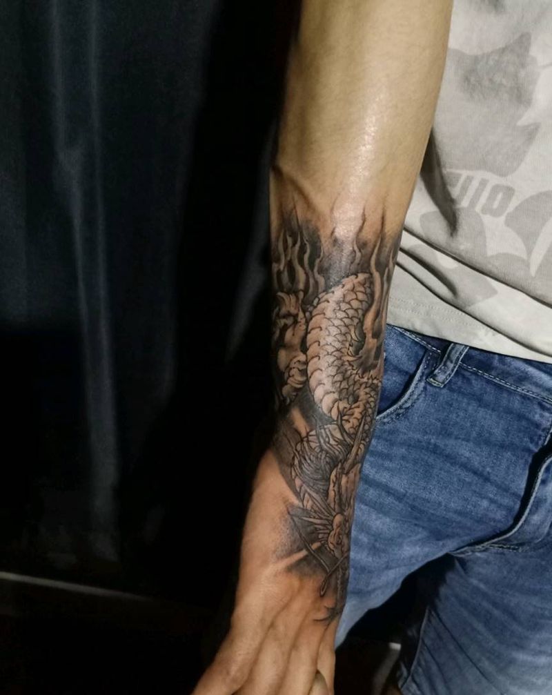 • T网红王老大花腿龙纹身图片_腿部新传统纹身图案