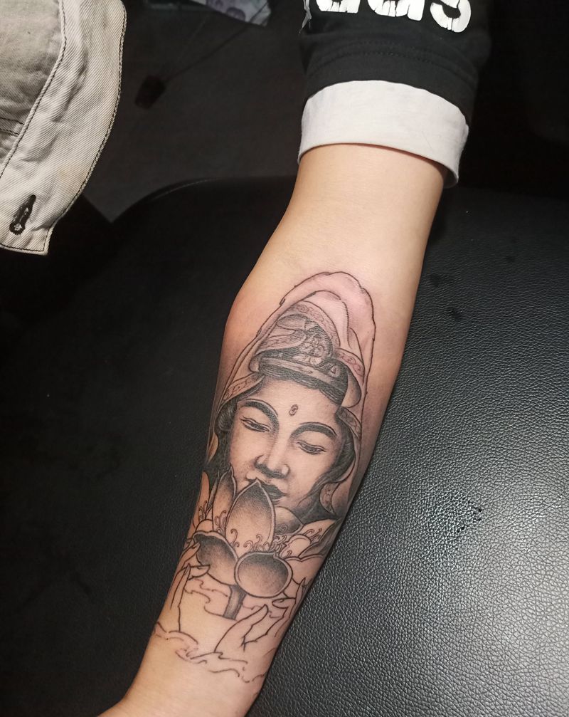 当前位置: 首页 >湖南省常德市纹身店-台湾刺青湖南店纹身图案>菩萨 莲花纹身图片_手臂纹身图案