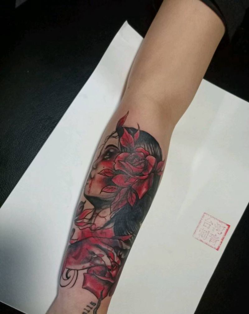 欧美女郎 遮盖纹身图片_手臂纹身图案