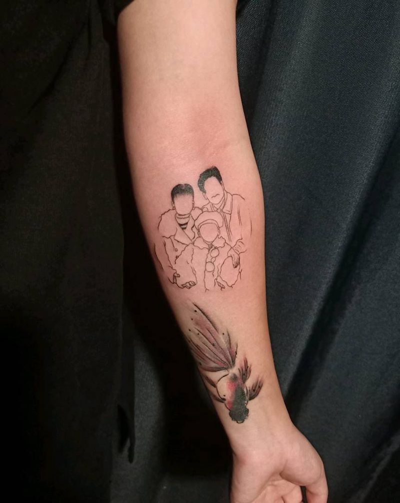 当前位置: 首页 >湖南省常德市纹身店-台湾刺青湖南店纹身图案>全家福+金鱼纹身图片_手臂纹身图案