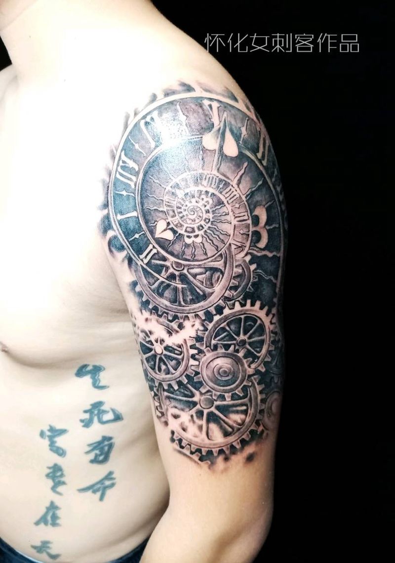 当前位置: 首页 >湖南省怀化市纹身店-湖南怀化女刺客纹刺部落纹身图案>机械时钟纹身图片_手臂欧美写实纹身图案