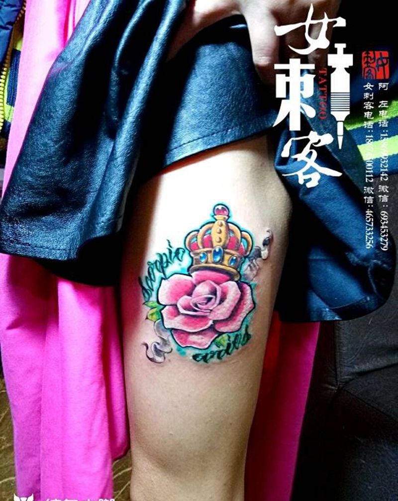 欧美皇冠玫瑰纹身图片