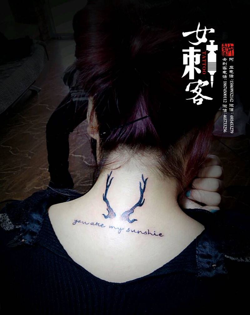 当前位置: 首页 >湖南省怀化市纹身店-湖南怀化女刺客纹刺部落纹身图案>鹿角加英文纹身图片