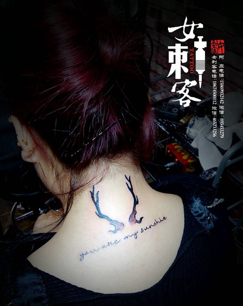 当前位置: 首页 >湖南省怀化市纹身店-湖南怀化女刺客纹刺部落纹身图案>鹿角加英文纹身图片