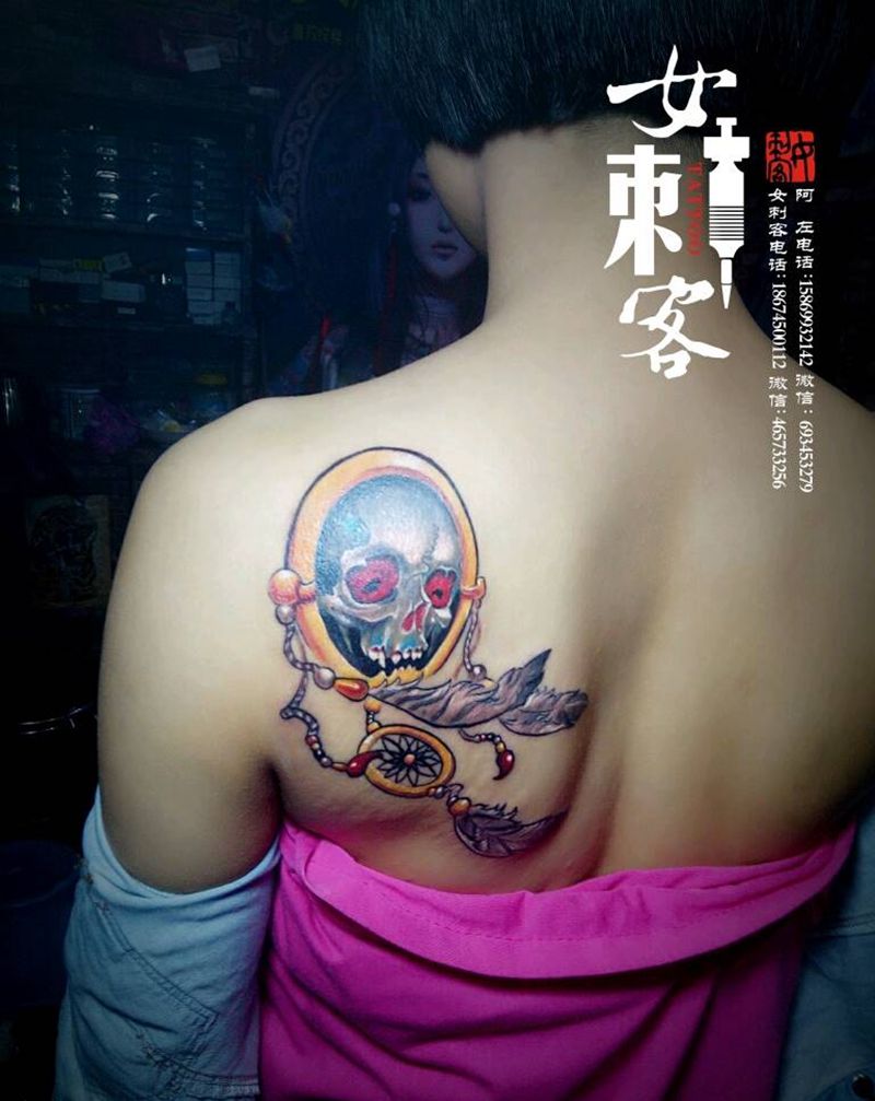当前位置: 首页 >湖南省怀化市纹身店-湖南怀化女刺客纹刺部落纹身图案>骷髅捕梦网纹身图片