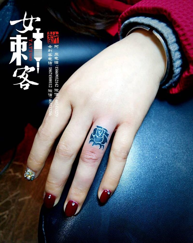• 手背潮流时尚的玫瑰花眼睛纹身图案