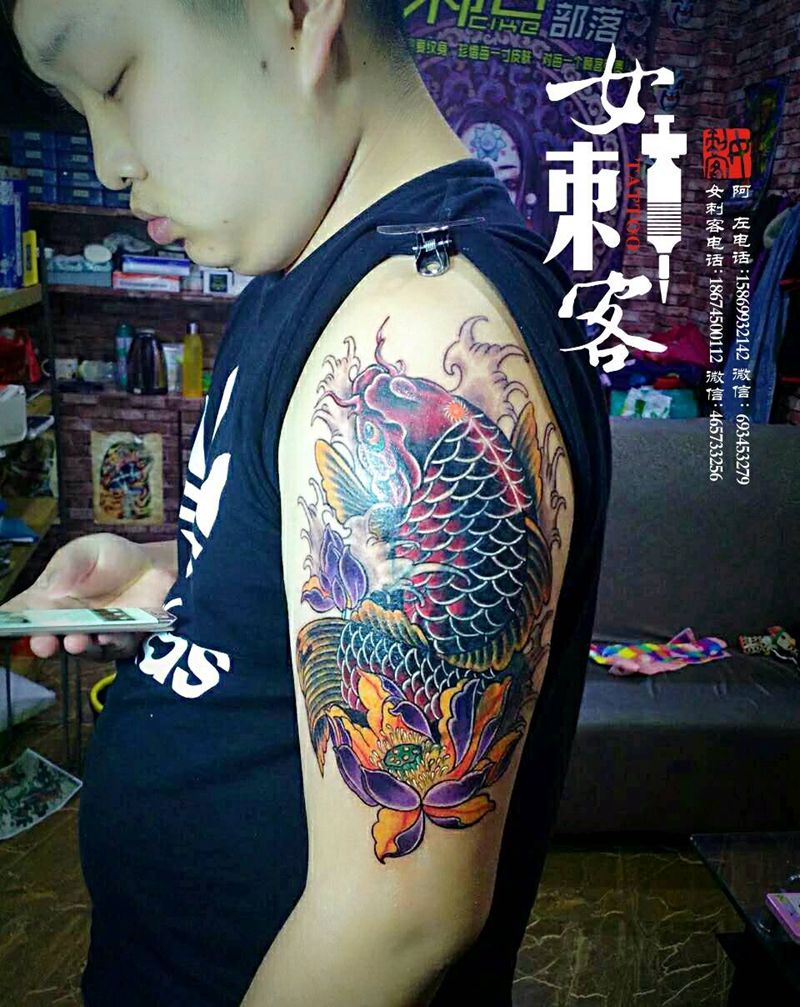 鲤鱼遮盖纹身图片