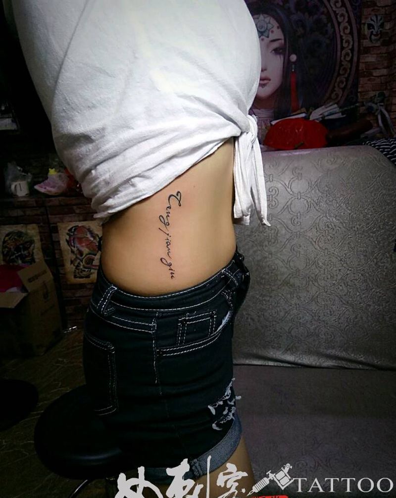 • T关于私处得爱!纹身图片_成品腹部清新字符图腾纹身图案