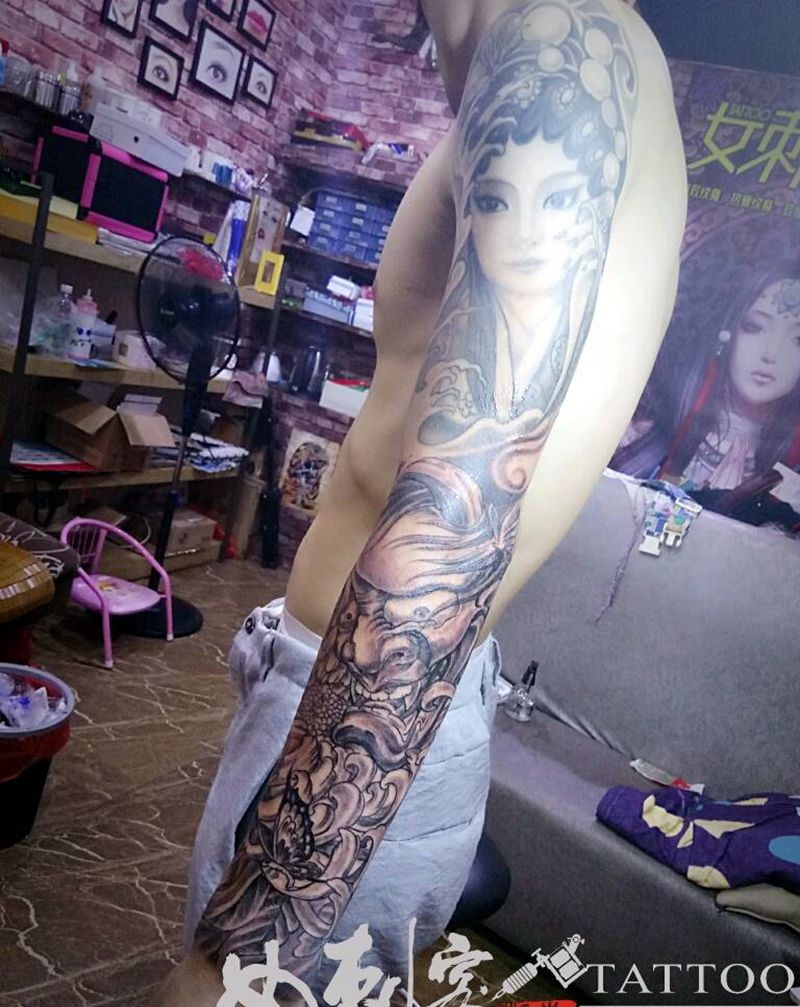 当前位置: 首页 >湖南省怀化市纹身店-湖南怀化女刺客纹刺部落纹身图案>女刺客阿左花臂作品纹身图片