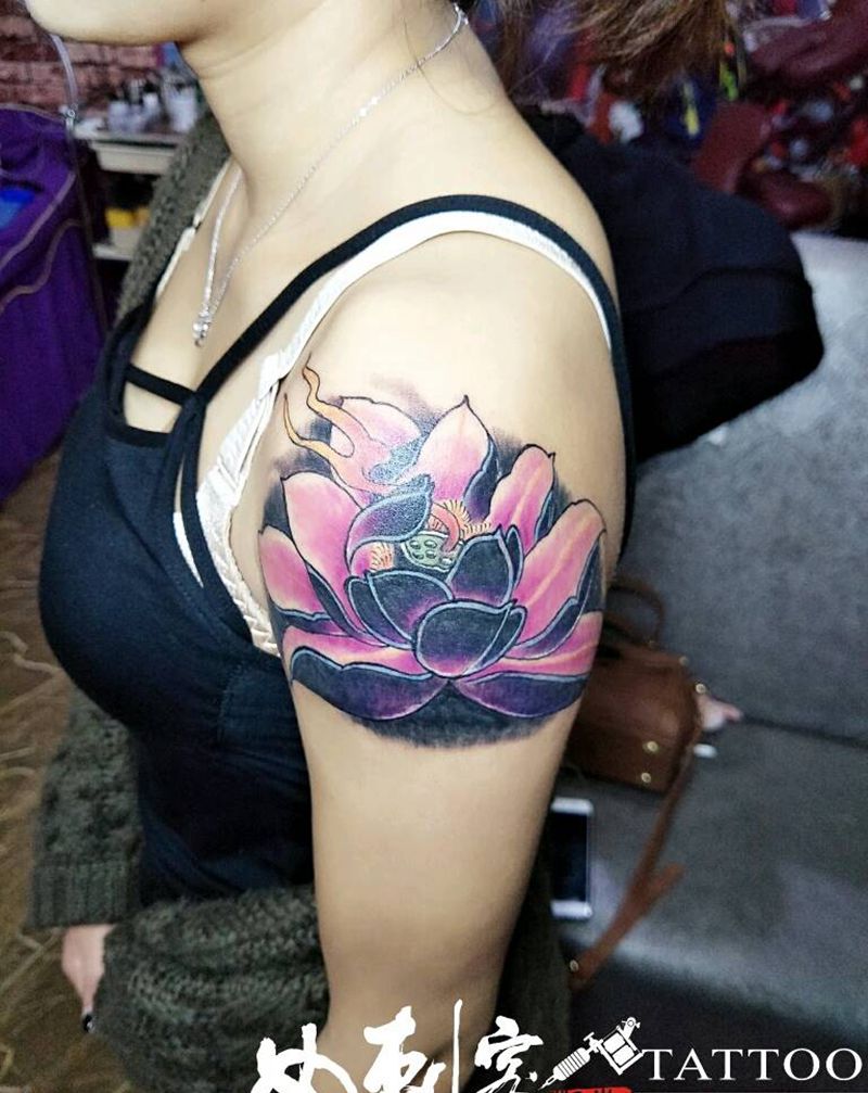 一组15张莲花纹身手