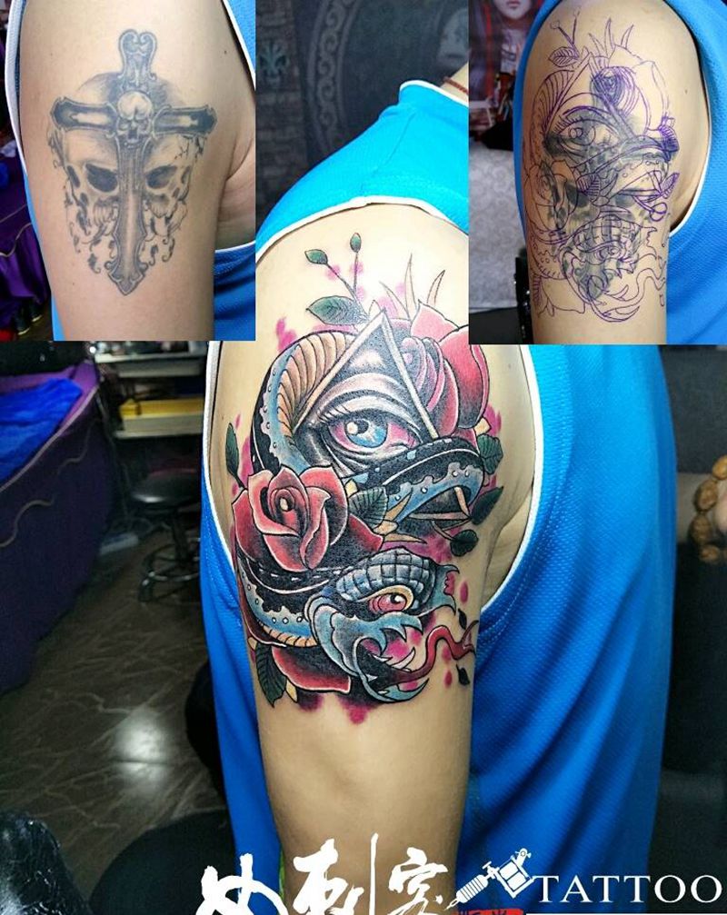 遮盖旧纹身纹身图片_手臂欧美重彩遮盖成品纹身图案
