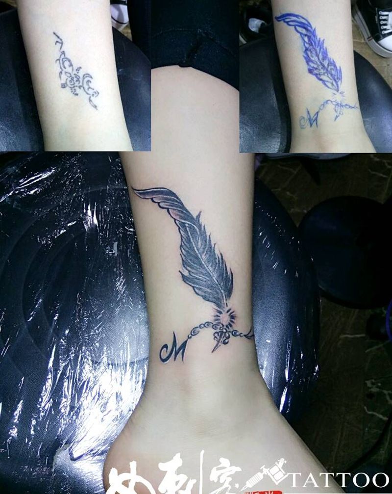 遮盖纹身图片_腿部清新遮盖成品纹身图案