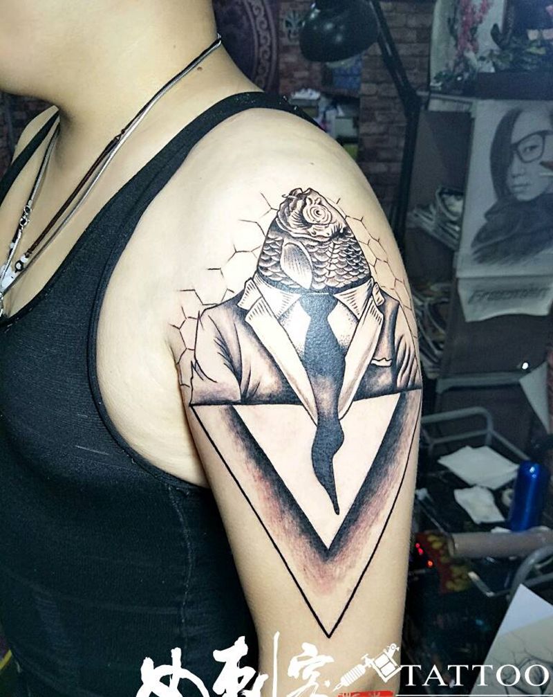 当前位置: 首页 >湖南省怀化市纹身店-湖南怀化女刺客纹刺部落纹身图案>鱼先生纹身图片_手臂欧美几何动物成品纹身图案