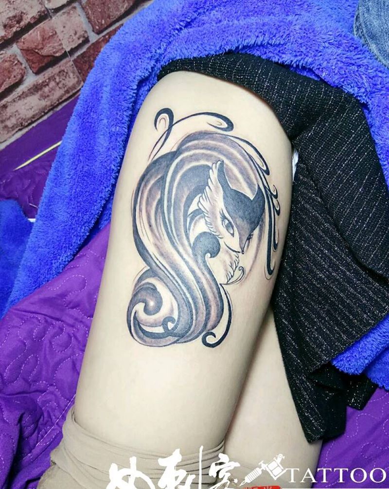 妖娆纹身图片_腿部清新动物成品纹身图案