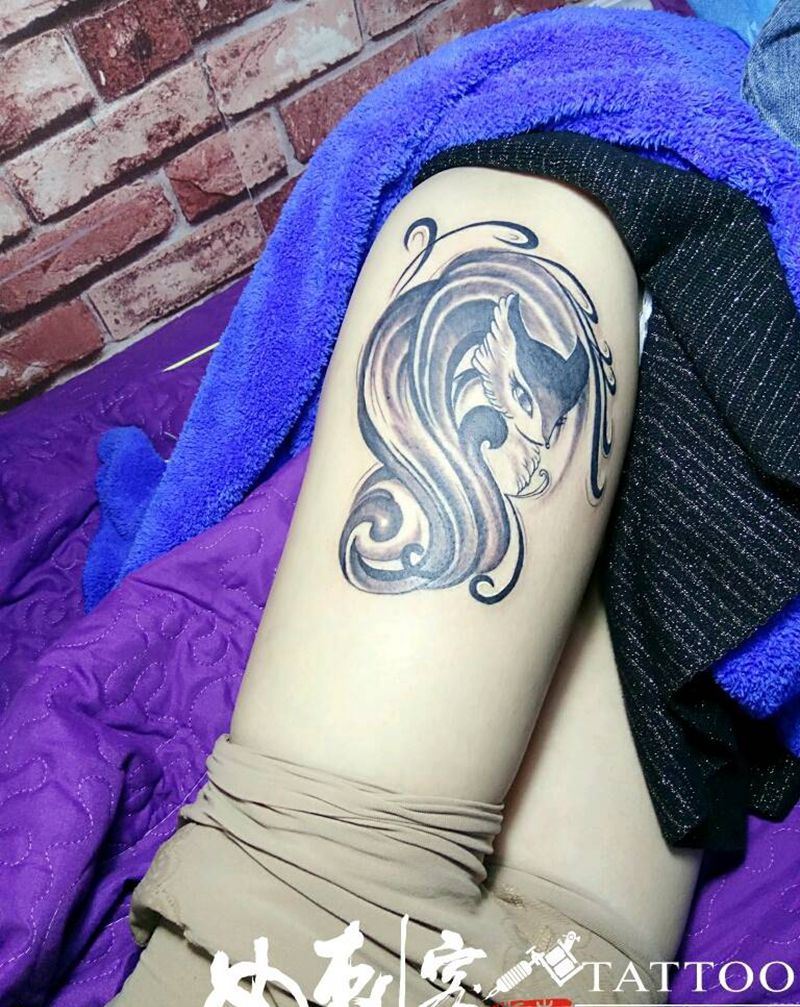 妖娆纹身图片_腿部清新动物成品纹身图案