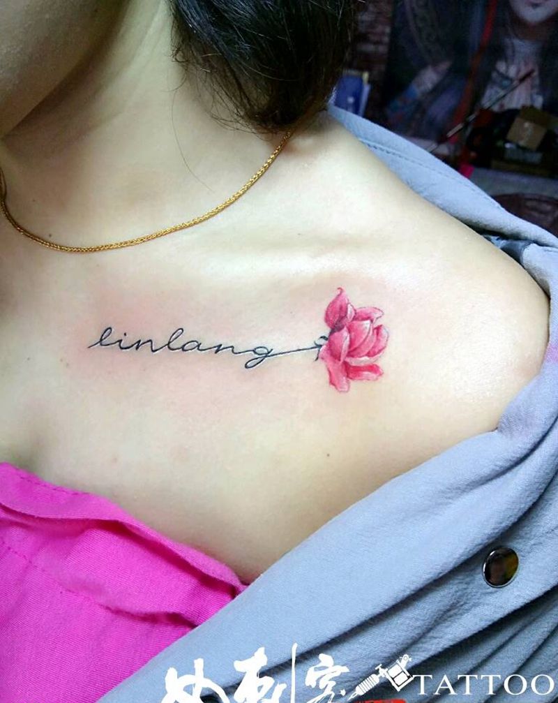 锁骨小性感纹身图片_欧美清新字符锁骨成品纹身图案