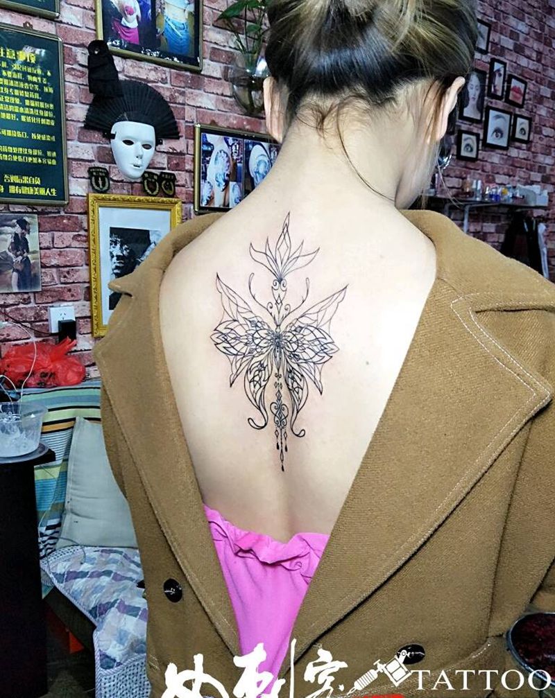 当前位置: 首页 >湖南省怀化市纹身店-湖南怀化女刺客纹刺部落纹身图案>线条纹身图片_背部欧美清新成品纹身图案