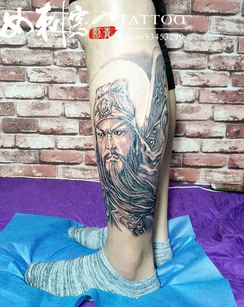 当前位置: 首页 >湖南省怀化市纹身店-湖南怀化女刺客纹刺部落纹身图案>关二爷纹身图片_腿部传统人物关二爷成品纹身图案