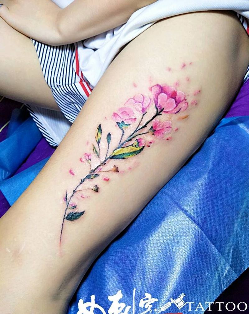 遮盖手术疤纹身图片_清新植物水彩成品纹身图案