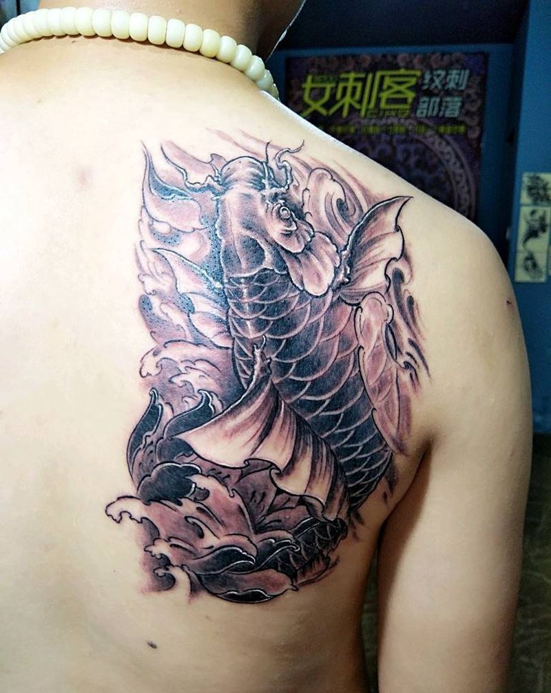 鲤鱼纹身图片_背部传统动物纹身图案