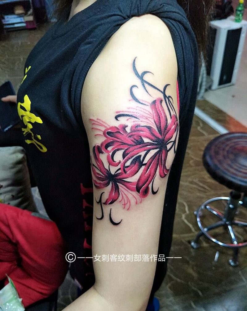 当前位置: 首页 >湖南省怀化市纹身店-湖南怀化女刺客纹刺部落纹身图案>彼岸花纹身图片_手臂欧美清新植物纹身图案