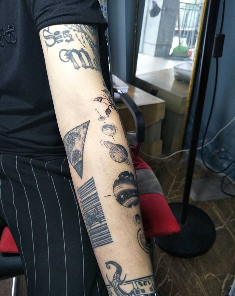 当前位置: 首页 >湖南省怀化市纹身店-湖南怀化女刺客纹刺部落纹身图案>拼接花臂纹身图片_手臂欧美清新纹身图案