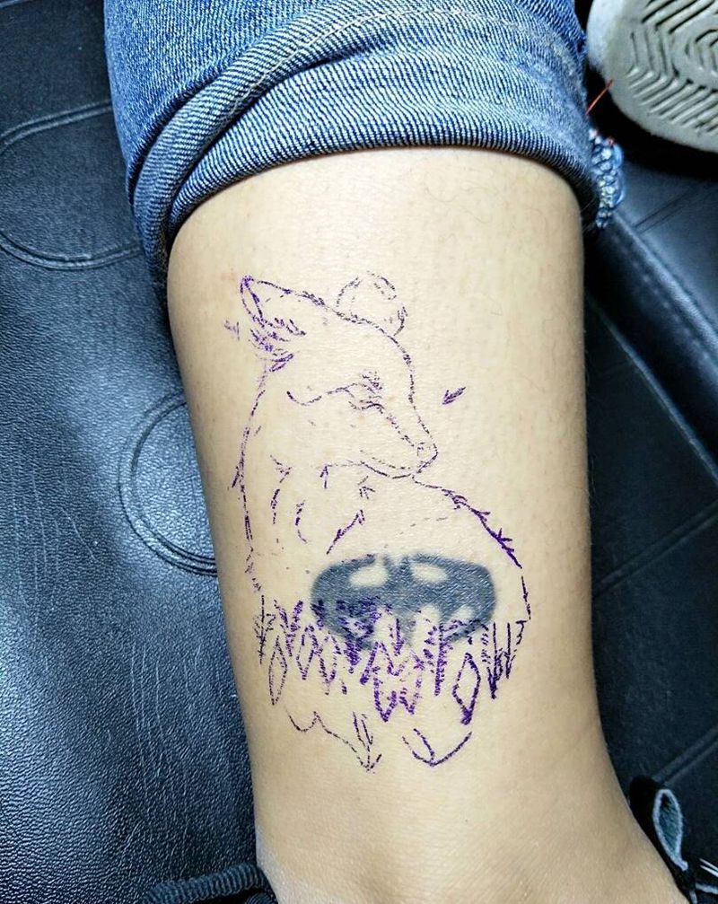 当前位置: 首页 >湖南省怀化市纹身店-湖南怀化女刺客纹刺部落纹身图案>遮盖作品盟盟哒纹身图片_腿部欧美动物成品纹身图案