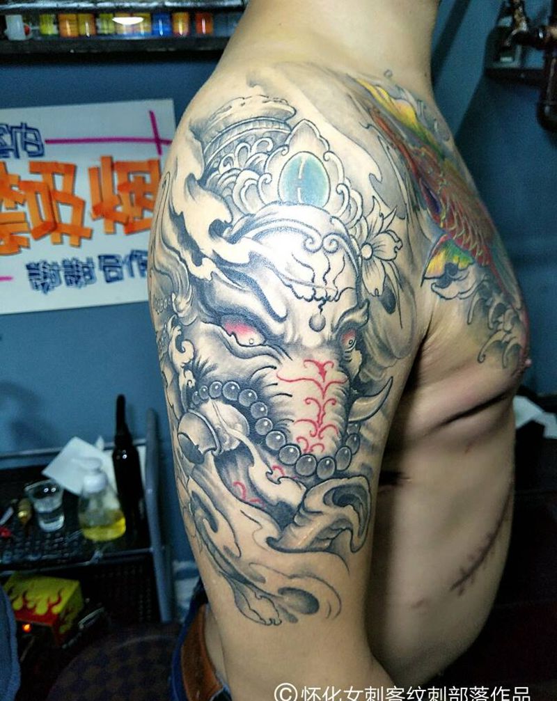 • 纹身吧推荐的披肩图腾半胛纹身图案作品展示