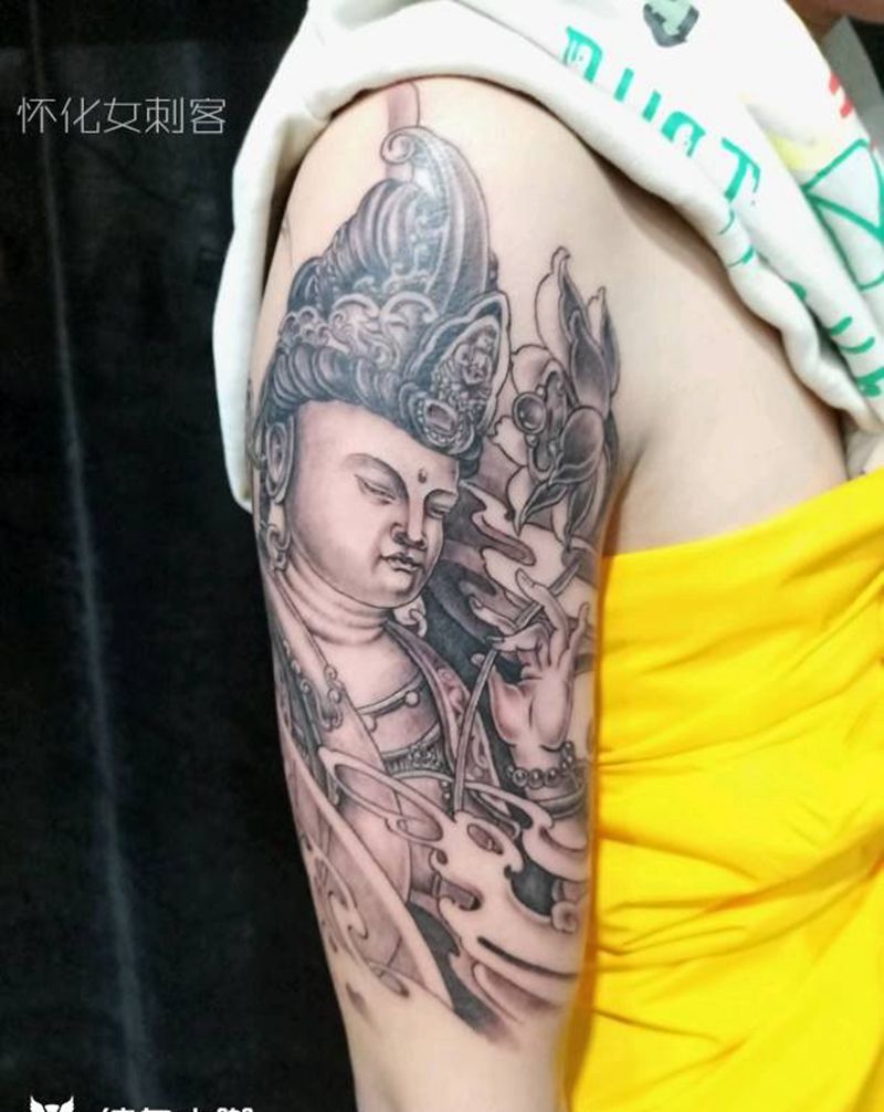 普贤菩萨纹身图片_手臂新传统佛纹身图案