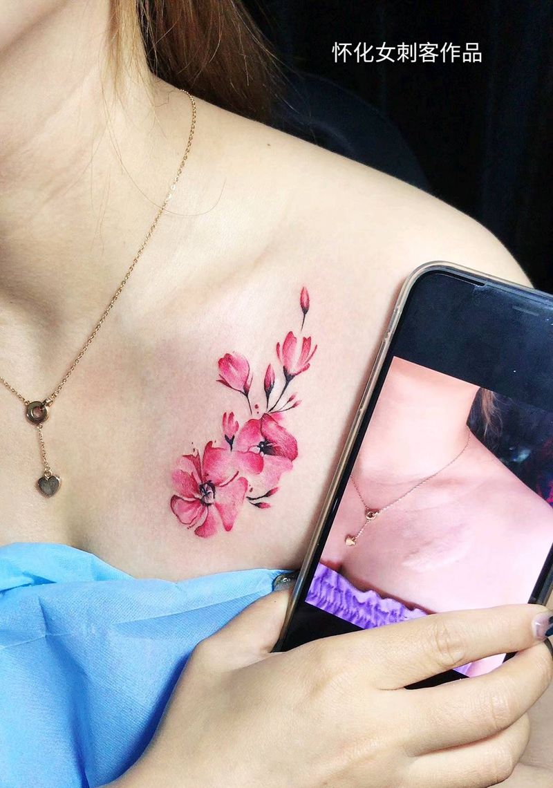 • 女性大花胸纹身_43张霸气漂亮的女性大花胸纹身图案作品