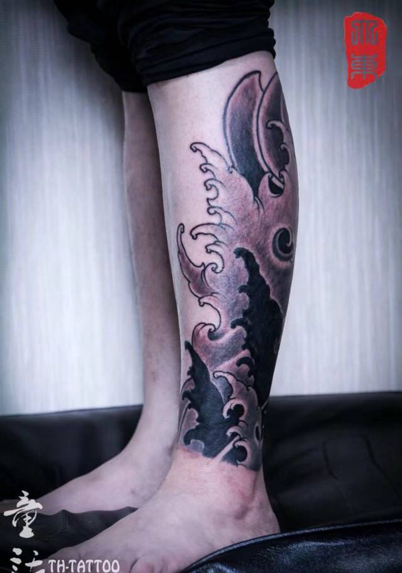 • T网红王老大花腿龙纹身图片_腿部新传统纹身图案