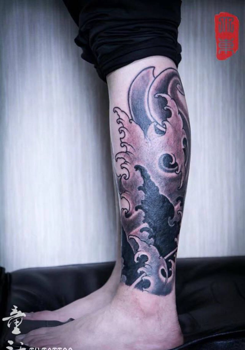 • T网红王老大花腿龙纹身图片_腿部新传统纹身图案