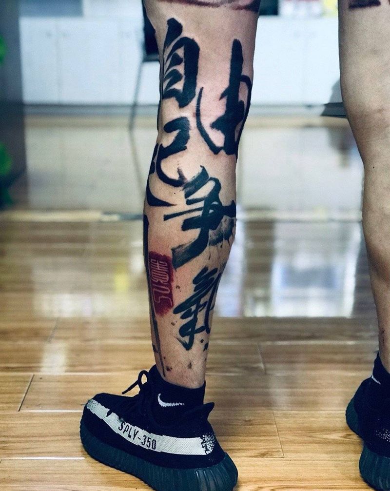 • T网红王老大花腿龙纹身图片_腿部新传统纹身图案