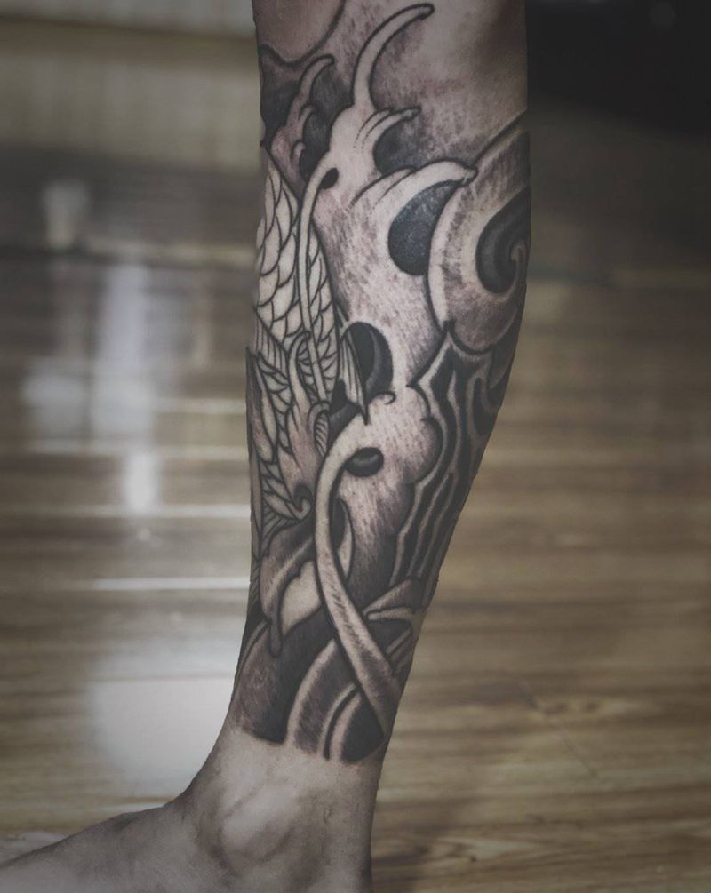 • T网红王老大花腿龙纹身图片_腿部新传统纹身图案