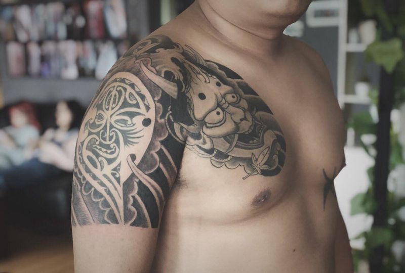 • 纹身吧推荐的披肩图腾半胛纹身图案作品展示