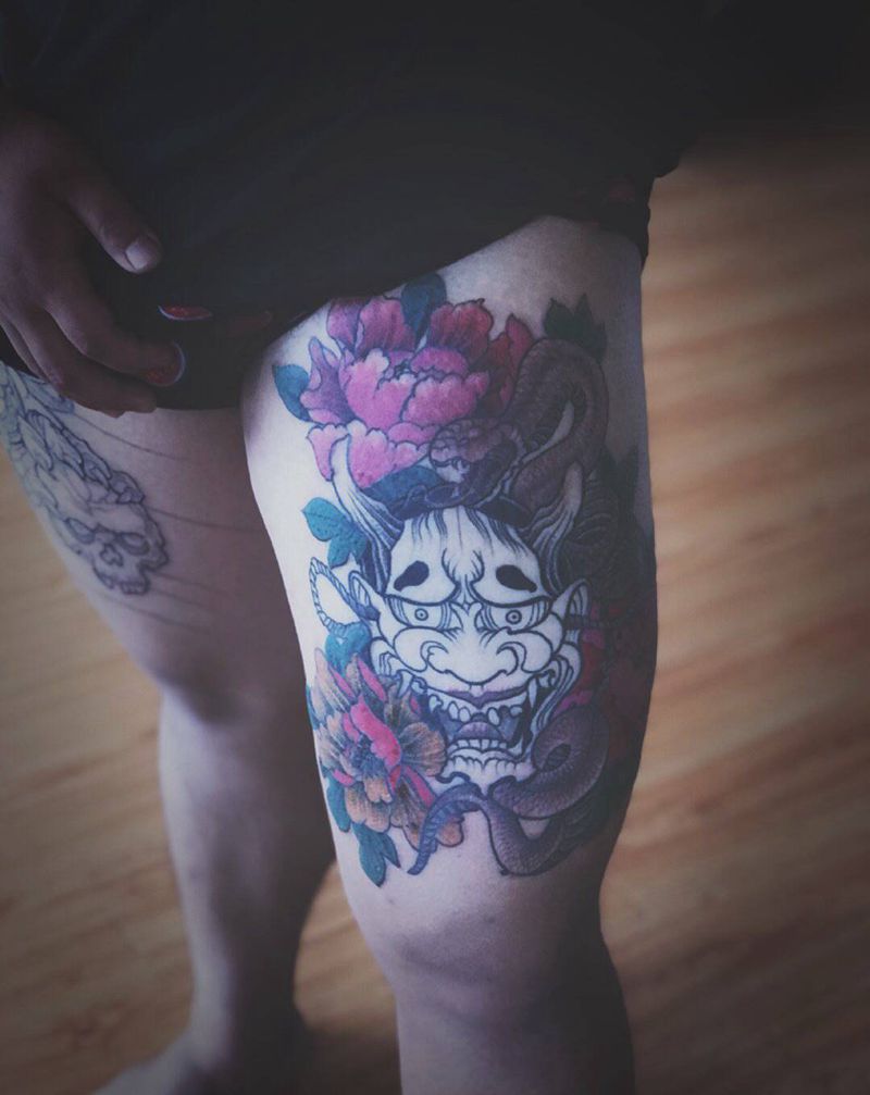 • T网红王老大花腿龙纹身图片_腿部新传统纹身图案