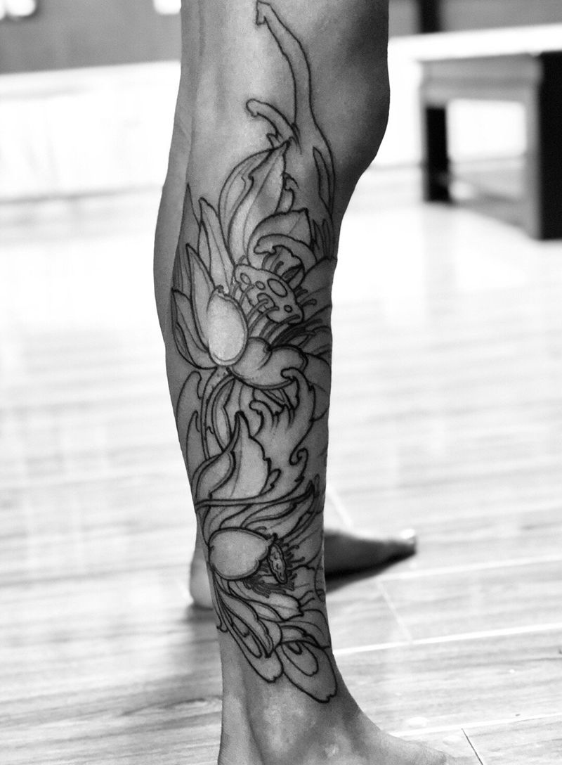• T网红王老大花腿龙纹身图片_腿部新传统纹身图案