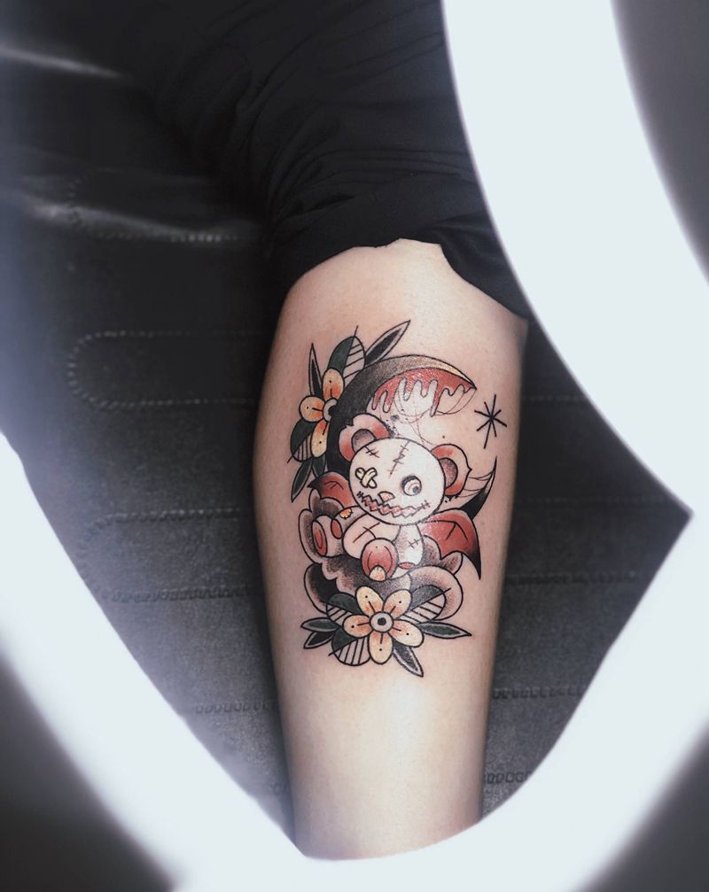 • T包小腿吹火男+阿多福纹身图片_腿部老传统新传统吹火男阿