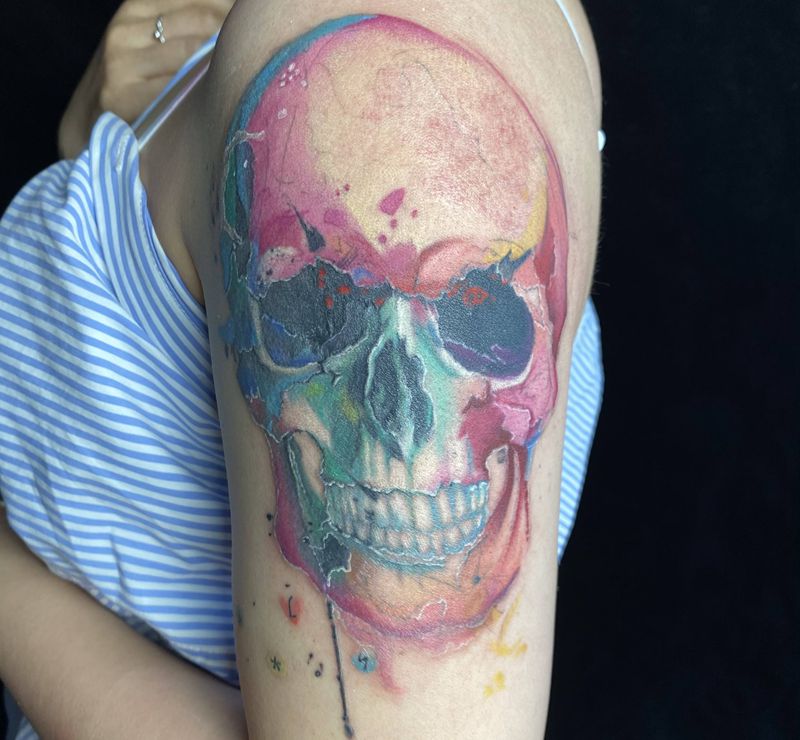 当前位置: 首页 >湖南省湘西土家族苗族自治州纹身店-古墨刺青纹身图案>骷髅头纹身图片_手臂纹身图案