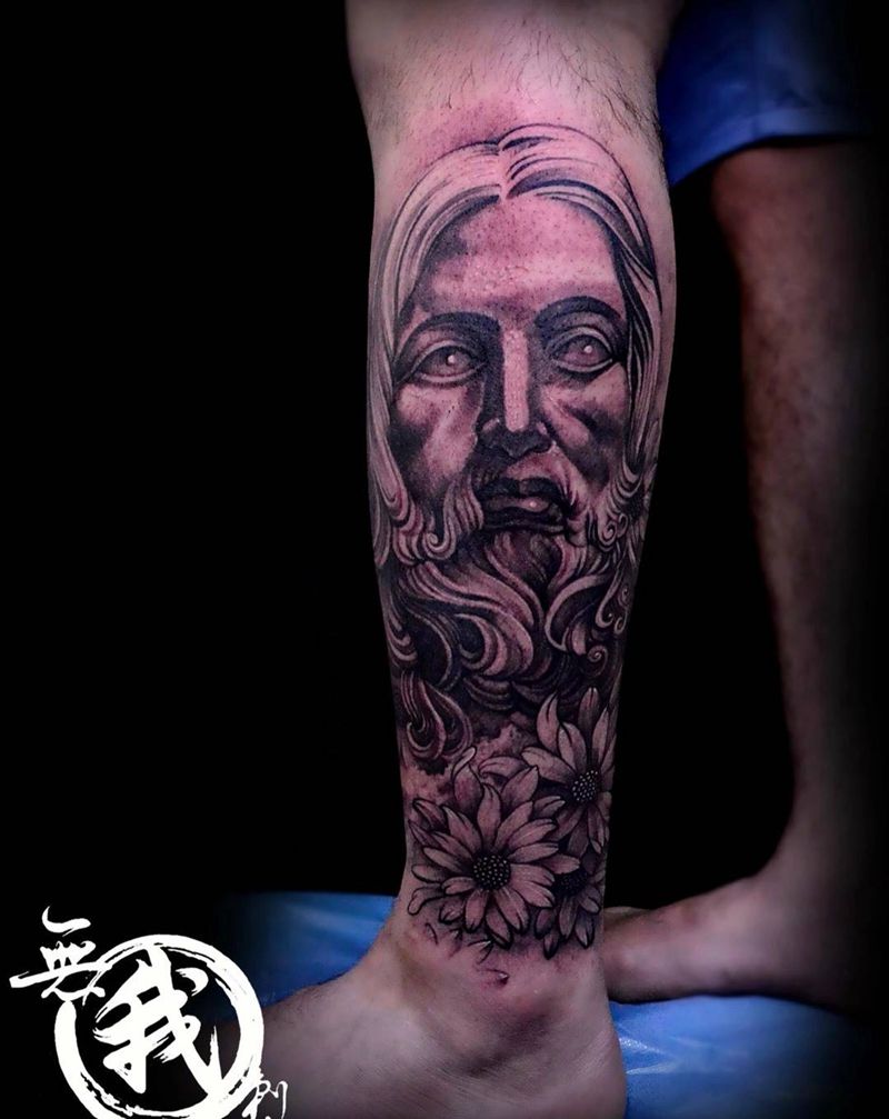 当前位置: 首页 >广东省广州市纹身店-广州纹身無我刺青tattoo纹身图案>欧美作品纹身图片_欧美写实肖像脚部腿部成品手稿鬼神宗教人物纹身图案
