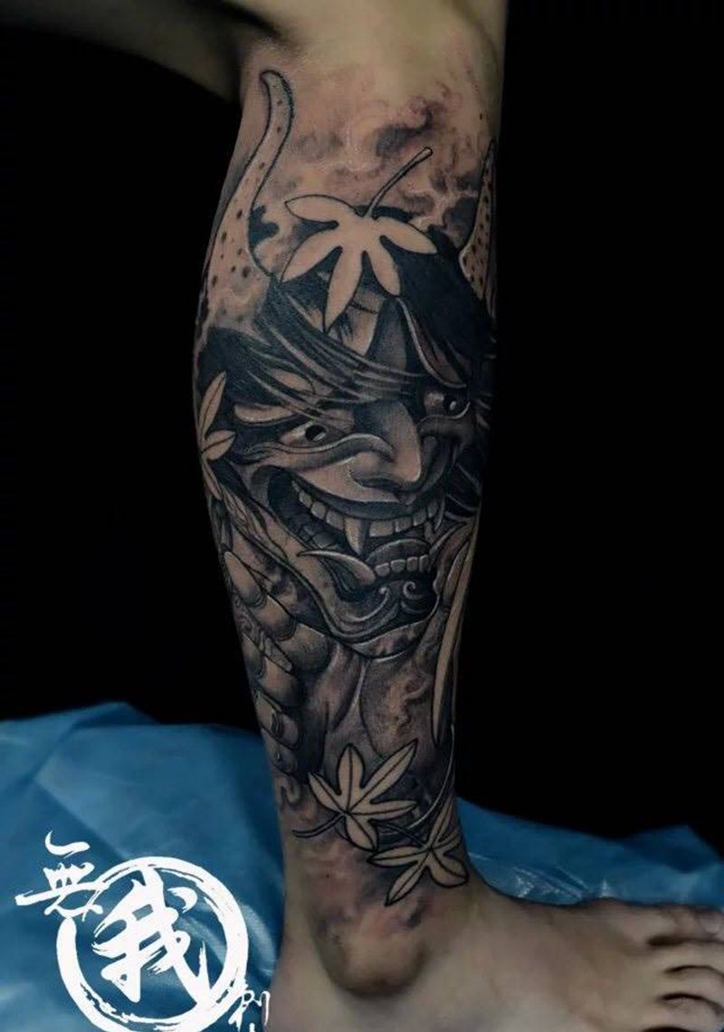 般若纹身图片_脚部腿部传统写实动物鬼神原创人物植物图腾纹身图案