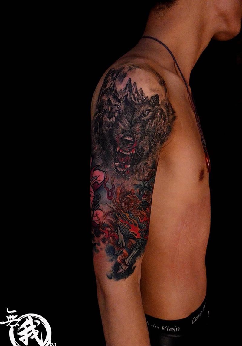 • 纹身吧推荐的披肩图腾半胛纹身图案作品展示