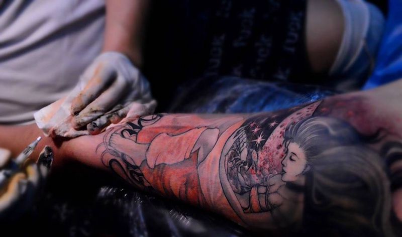当前位置: 首页 >广东省广州市纹身店-广州纹身無我刺青tattoo纹身图案>包大臂纹身图片_成品手稿插画手部手臂欧美写实肖像人物纹身图案