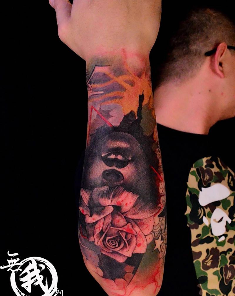 当前位置: 首页 >广东省广州市纹身店-广州纹身無我刺青tattoo纹身图案>包小臂作品纹身图片