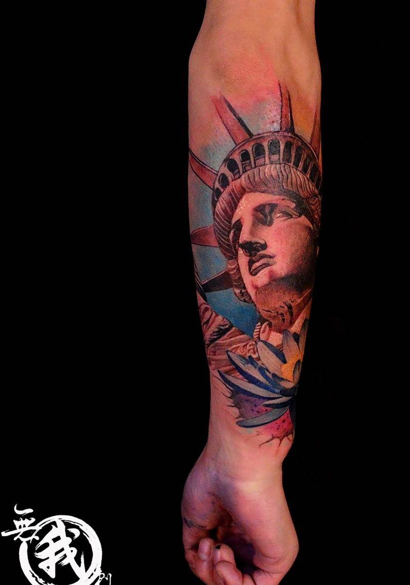 当前位置: 首页 >广东省广州市纹身店-广州纹身無我刺青tattoo纹身图案>自由女神纹身图片_成品手稿手部手臂欧美人物宗教纹身图案