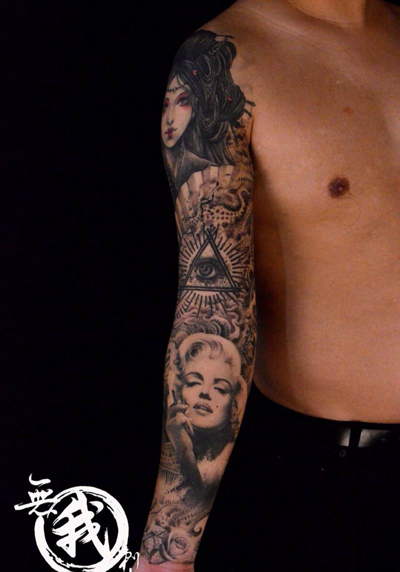当前位置: 首页 >广东省广州市纹身店-广州纹身無我刺青tattoo纹身图案>欧美花臂纹身图片_人物原创写实欧美肖像手部手臂成品手稿插画纹身图案
